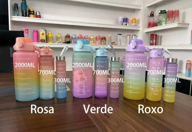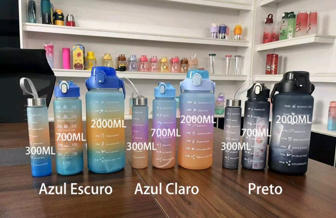 Kit garrafas de água squeeze academia 1000ml 700ml 300ml com canudo squeeze academia